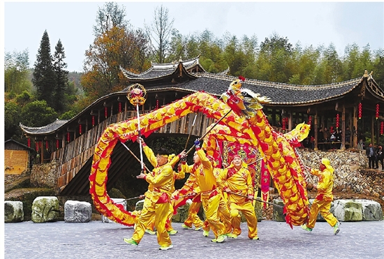 当地村民用舞长龙等形式庆祝文兴桥的重生。