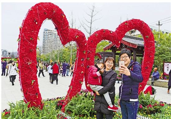 12月30日,舟山定海花卉节吸引众多市民观看留影。