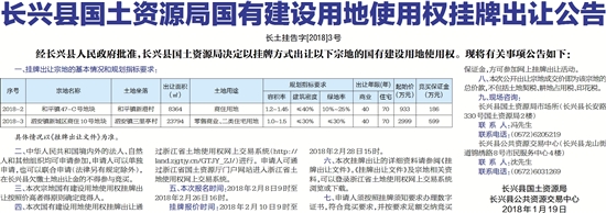 长兴县国土资源局国有建设用地使用权挂牌出让公告