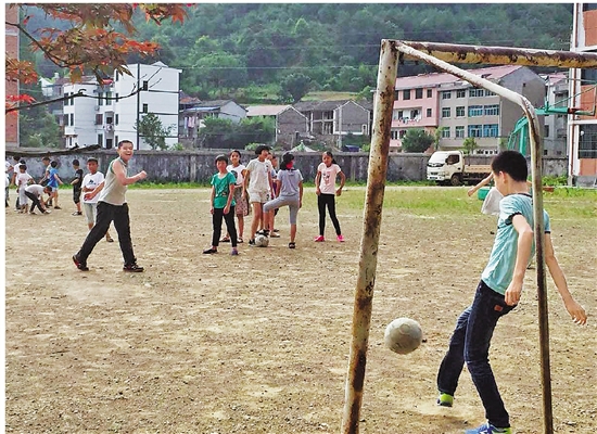 2015年,孩子们还在简陋的球场上踢球。(资料图)