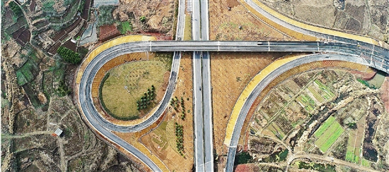 1月23日,临安至缙云公路义乌城西至佛堂段(疏港快速路),与甬金高速公路正式实现互联互通。这意味着疏港快速路将与杭金衢高速、义东高速、佛堂互通、甬金高速相连形成一条总里程66公里、覆盖面积265平方公里的绕城高速圈。图为高空俯瞰疏港快速路佛堂互通。 拍友 吕斌 摄 |