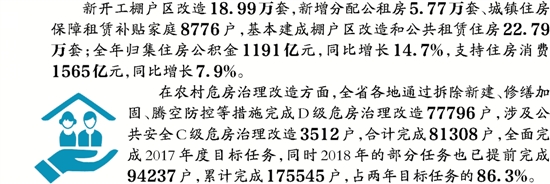 新开工棚户区改造18.99万套,新增分配公租房5.77万套、城镇住房保障租赁补贴家庭8776户,基本建成棚户区改造和公共租赁住房22.79万套;全年归集住房公积金1191亿元,同比增长14.7%,支持住房消费1565亿元,同比增长7.9%。