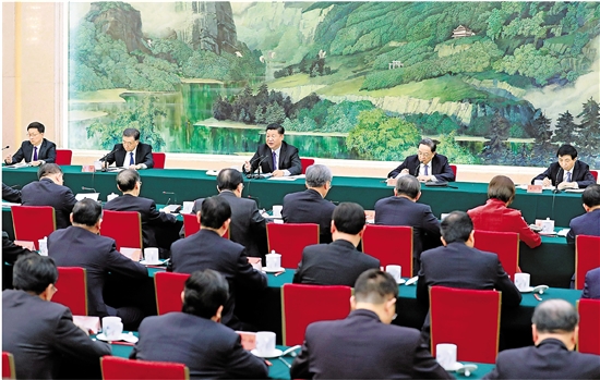 2月6日,习近平、俞正声、汪洋、王沪宁、韩正等在北京人民大会堂同党外人士座谈并共迎新春。 新华社记者 丁林 摄