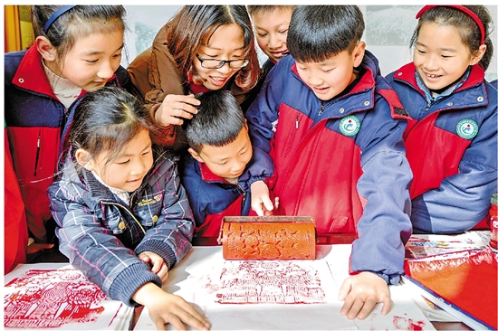 2月11日,长兴县的小学生在县博物馆印刷“福禄寿”木版年画。寒假期间,长兴县的中小学生纷纷依托春泥计划、流动少年宫等平台,了解春节传统文化知识和民间传统习俗,体验民间艺术和非遗文化的魅力。 拍友 谭云俸 张泽民 摄 |