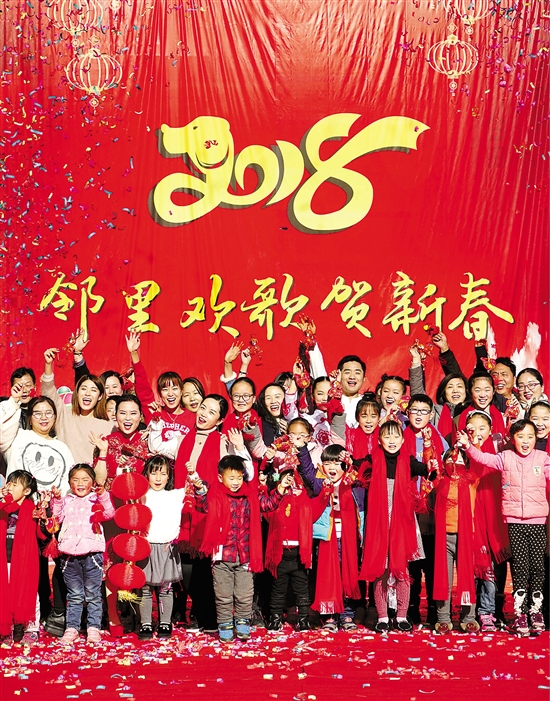 2月13日,在杭州笕桥街道枸桔弄社区舞台上,江干区文化志愿者与居民一起载歌载舞大联欢,喜迎新春佳节的到来。 本报记者 裘志伟 李震宇 吴新燕 摄