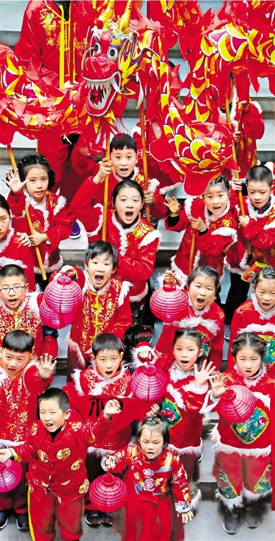 杭州青少年发展中心Do都城里,小朋友们换上了节日盛装,一起舞龙写福,同贺新春。 本报记者 吴煌 拍友 张莉娜 摄