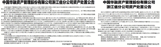 中国华融资产管理股份有限公司浙江省分公司资产处置公告