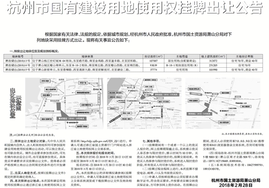 (四)现场咨询:杭州市国土资源局萧山分局5楼5003室(萧山区育才北路508号);咨询电话:(0571)82735669、83893816。