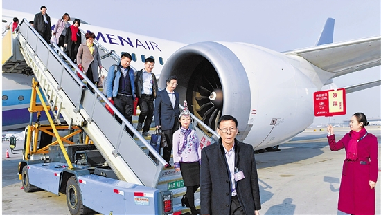 3月2日,出席十三届全国人大一次会议的浙江代表团乘机抵达首都北京。