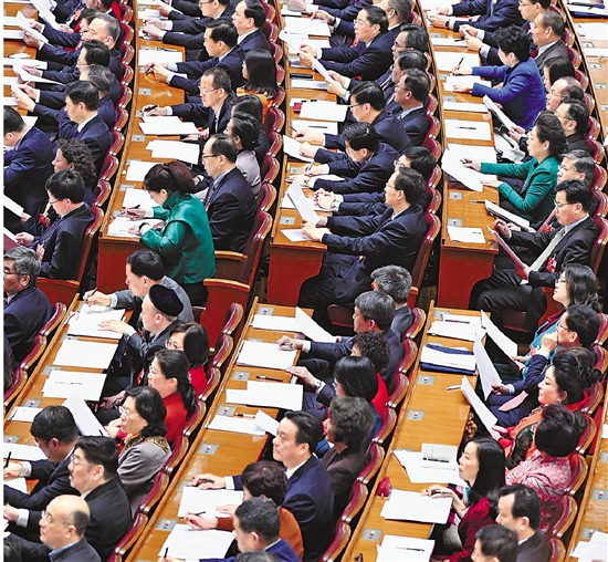 3月3日,中国人民政治协商会议第十三届全国委员会第一次会议在北京人民大会堂开幕。这是委员们在认真听会。 新华社记者 高洁 摄