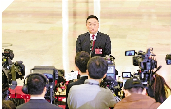水利部部长陈雷在“部长通道”接受采访。 新华社记者 杨宗友 摄