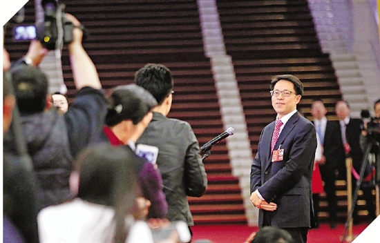 国务院港澳事务办公室主任张晓明在“部长通道”接受采访。 新华社记者 金立旺 摄
