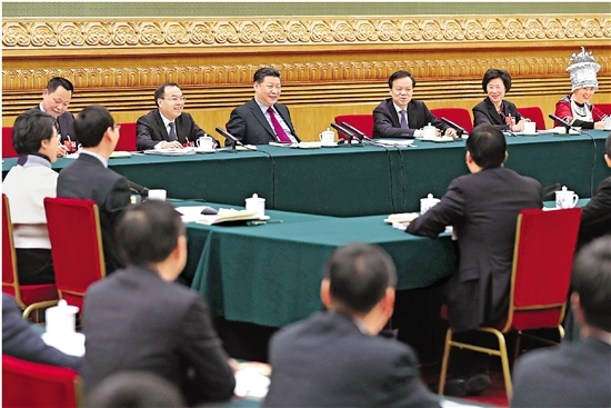 3月10日,中共中央总书记、国家主席、中央军委主席习近平参加十三届全国人大一次会议重庆代表团的审议。