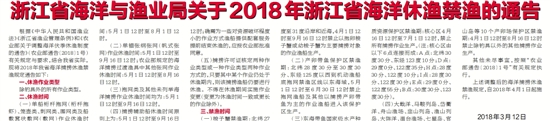 浙江省海洋与渔业局关于2018年浙江省海洋休渔禁渔的通告