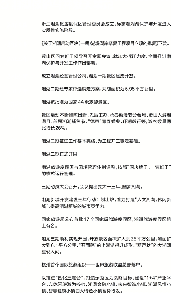 浙江湘湖旅游度假区管理委员会成立,标志着湘湖保护与开发进入实质性实施阶段。