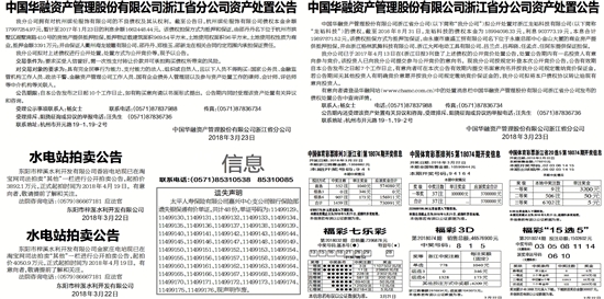 中国华融资产管理股份有限公司浙江省分公司资产处置公告