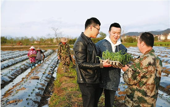 莲都区碧湖镇农业农村综合服务中心农技员来到上阁村种粮大户的田头,讲解玉米种植技术。