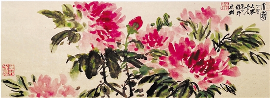 国色朝酣酒,天香夜染衣。纸上春日,似有花香飘然而出,令人回味。浙江省中国人物画研究会副秘书长陈阳写意牡丹,笔墨淋漓圆润,色彩艳而不俗,既有传统笔墨意蕴,又合乎现代人审美要求,色韵万千,雅俗共赏,自成一格。