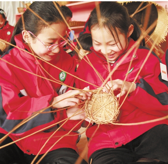 | 百年柳编 课堂传承 几根纤细的柳条,在学生指尖快速地游走,慢慢地一个精致的花篮就形成了。3月26日,湖州市东林镇第二小学的学生们举行了“拼拼我们的小手艺”活动,学生们用柳条编制成了各式各样的作品。 据了解,柳编文化作为该校所在地东林镇特有的文化遗产,距今已有400余年的历史。学校从2006年起就确立这一特色项目,把当地非遗项目柳编传承搬进拓展性课堂,开发柳编课程,聘请民间艺人指导,创作柳编舞蹈……10多年的探索,在学生心中种下非遗的种子。 林晨栎 摄 |