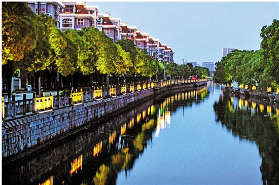 谢家路江两岸安装了LED照明,华灯初上,美轮美奂。