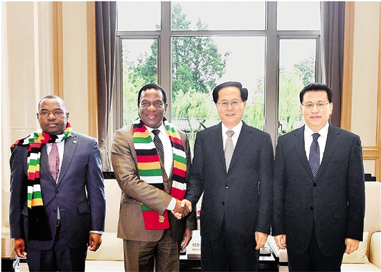4月6日,省委书记、省人大常委会主任车俊在杭州会见了津巴布韦总统姆南加古瓦一行。袁家军等一同会见。