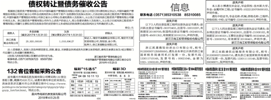 中国华融资产管理股份有限公司浙江省分公司2018年4月25日