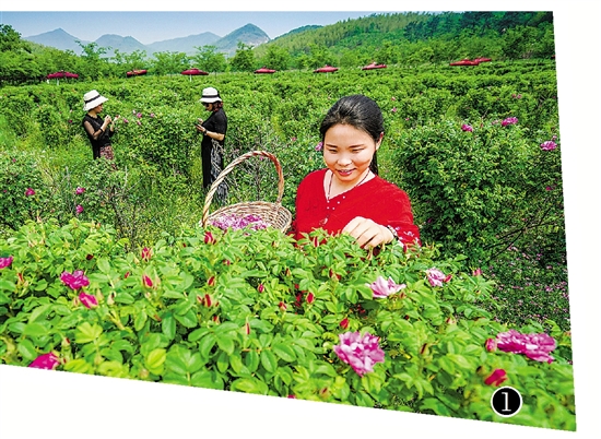 ❶ 4月29日,长兴县煤山镇山泉玫瑰谷内的500亩玫瑰花绽放,上海游客体验自助采摘乡村游,采下的玫瑰花瓣将被制成玫瑰面膜、玫瑰花茶等。 拍友 吴拯 张泽民 摄
