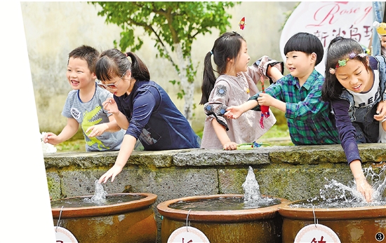 ❸ 4月29日,杭州富阳龙门古镇景区人头攒动、游人如织。 本报记者 吴元峰 摄