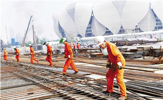 4月30日,“五一”小长假第二天,杭州地铁6号线奥体站建设工地一片忙碌景象。200多名建设者节日期间坚守岗位,奋战在工地上。