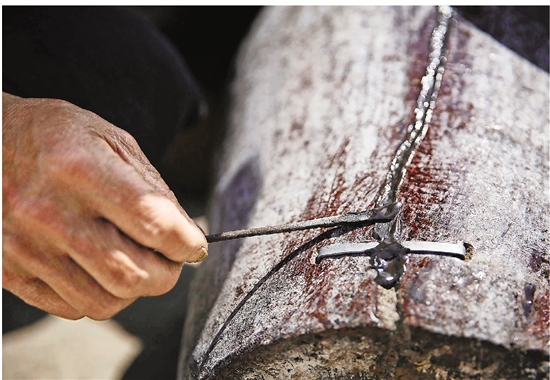 以前修补开裂酒坛用的材料是铁砂,现在改为了树脂。