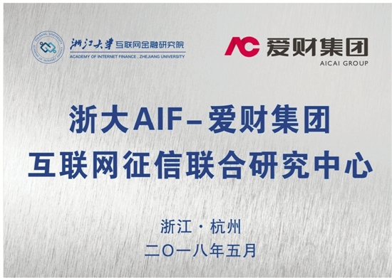 “浙大AIF-爱财集团互联网征信联合研究中心”铜牌