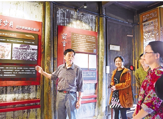 在红色印迹馆,退休教师陈贤灼向游客介绍马头村革命历史。