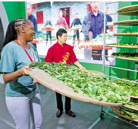 国际友人体验中国茶叶的制作工艺。