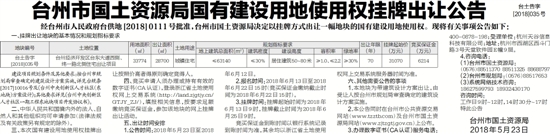 2.本公告同时在台州市公共资源交易网站(www.tzztb.com)及台州市国土资源局网站(www.zjtzgtj.gov.cn)上公布。