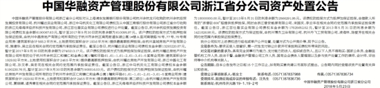 中国华融资产管理股份有限公司浙江省分公司资产处置公告