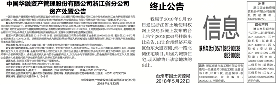 中国华融资产管理股份有限公司浙江省分公司拟对从交通银行股份有限公司浙江省分行收购的浙江金力钢管塔制造有限公司债权、中国工商银行股份有限公司浙江省分行收购的杭州宝恒进出口有限公司债权进行组包公开处置,现予以公告。