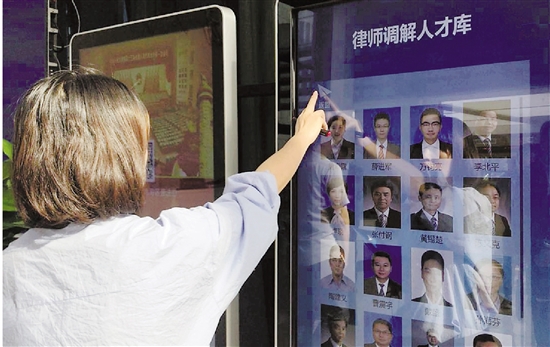 在温州瓯海区,市民群众可以通过多媒体设备了解区内各类调解人才的资料。