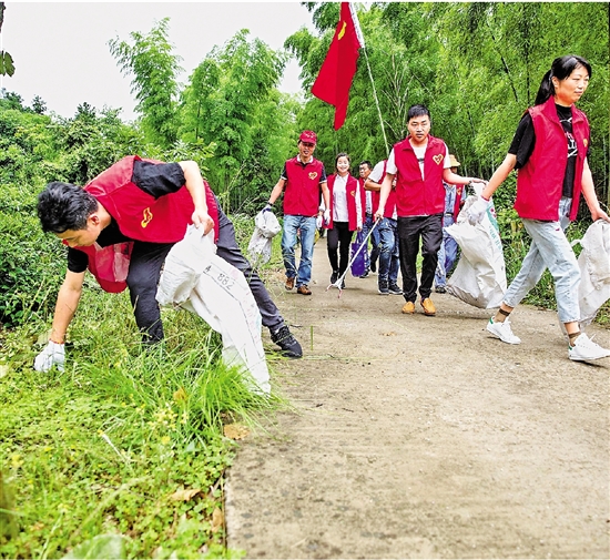 近日,长兴县小浦镇的党员志愿者、巾帼志愿者在古道沿线清理垃圾,扮靓美丽乡村。 拍友 李岿 张泽民 摄