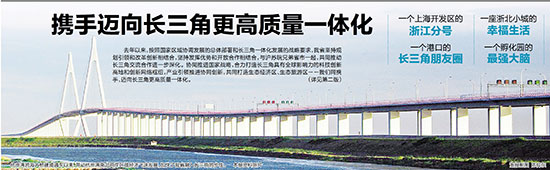 去年以来,按照国家区域协调发展的总体部署和长三角一体化发展的战略要求,我省坚持规划引领和改革创新相结合,坚持发挥优势和开放合作相结合,与沪苏皖兄弟省市一起,共同推动长三角交流合作进一步深化。协同推进国家战略,合力打造长三角具有全球影响力的科技创新高地和创新网络枢纽,产业引领推进协同创新,共同打造生态经济区、生态旅游区……我们同携手,迈向长三角更高质量一体化。 (详见第二版)