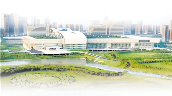杭州国际博览中心绿水环绕