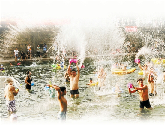戴村镇七都溪景美岸绿,被打造成天然泳池