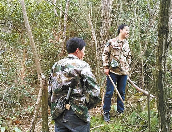 为了开发一处荒山种茶,徐遂(右)一天两次徒步上山(资料照片)。