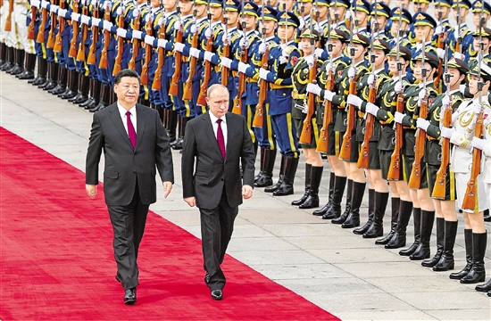 6月8日,国家主席习近平在北京人民大会堂同俄罗斯总统普京举行会谈。这是会谈前,习近平在人民大会堂东门外广场为普京举行欢迎仪式。 新华社记者 陈晔华 摄