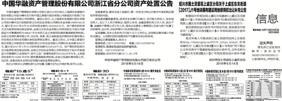 中国华融资产管理股份有限公司浙江省分公司资产处置公告