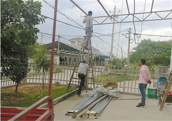 | 农房整治拆违建 连日来,柯城区大力推进农房整治,拆除违建扮美乡村,该区双港街道专门成立农房整治工作专班,进村入户,调查分类,有序推进违建拆除。村干部也纷纷带头,主动拆除违建。图为南村村干部主动拆除自家车棚。 张红英 摄 |