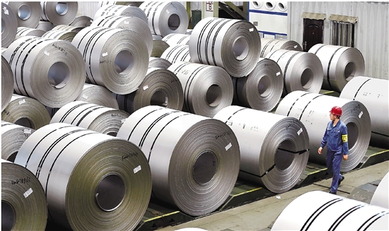 这是山西太钢集团等待加工的不锈钢卷。 新华社记者 燕雁 摄