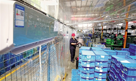 7月19日,嘉兴南湖区新丰镇一家公司在敞开式的车间内用塑料薄膜搭起“临时空调房”,给一线员工送去夏日清凉。