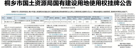 桐乡市国土资源局国有建设用地使用权挂牌公告