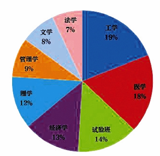 ▲图一:浙江省前100个投档高分志愿单位的学科门类分布。