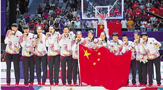 9月1日,在第18届亚运会男子和女子篮球决赛中,中国男女篮分别战胜各自对手,夺得冠军。